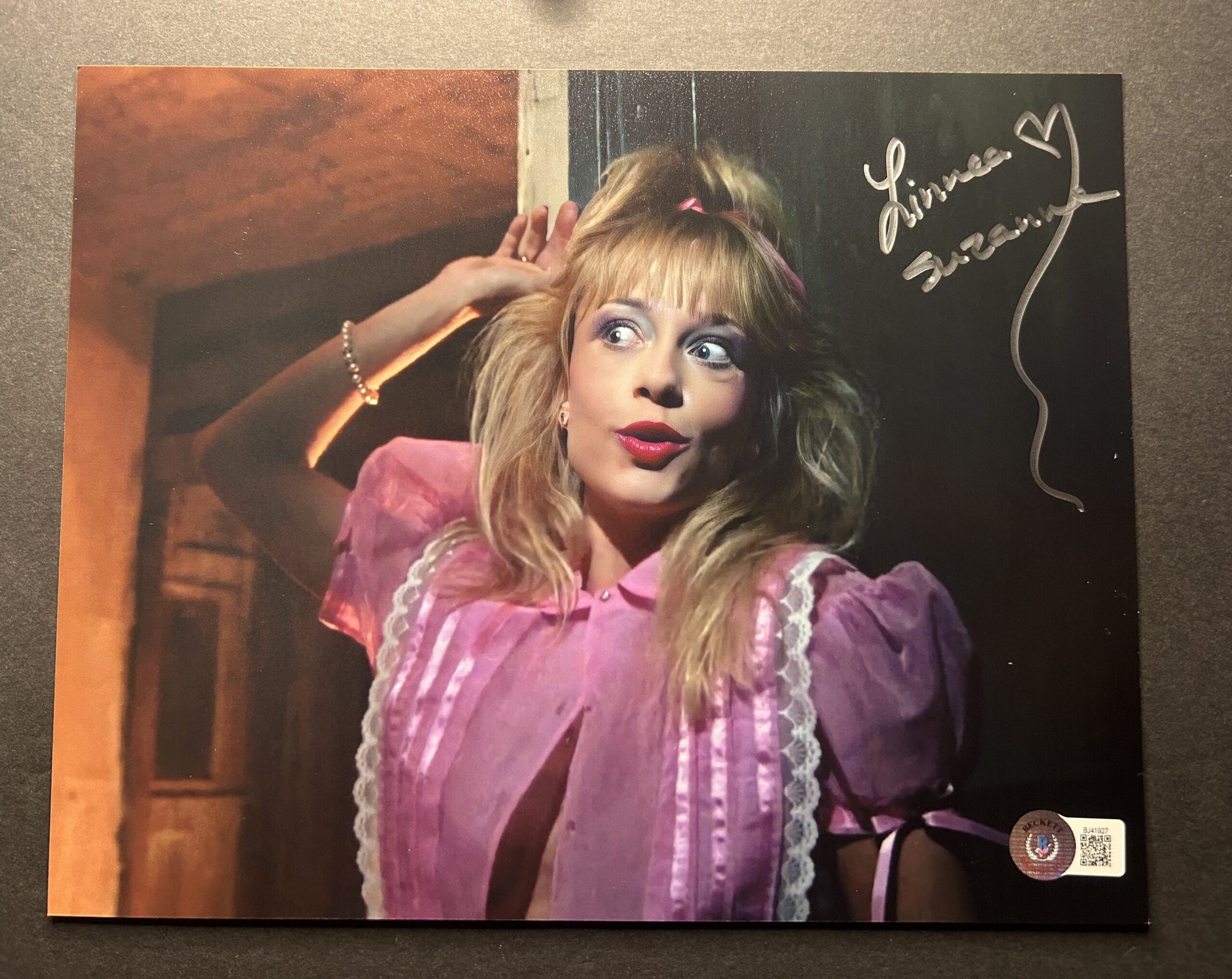 8×10 photo from the movie Night of the Demons, autographed by Linnea Quigley and inscribed “Suzanne” *2 in stock* Beckett – BJ41927 & Beckett – BJ17079